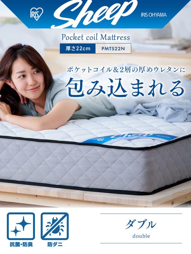 【開梱設置対象】マットレス ダブル ポケットコイルマットレス ポケットコイル 2層ウレタン 抗菌 防臭 防ダニ ホテル 体圧分散 通気性 PMTS22N-D アイリスオーヤマ ポケットコイル コイル マットレス マッ トベッド ダブル 抗菌 防臭 防ダニ 睡眠 組立設置
