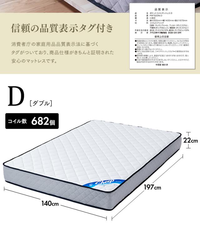 (検索用:ポケットコイル・コイル・マットレス・マッ・トベッド・ダブル・抗菌・防臭・防ダニ・睡眠・快眠・組立設置・4967576557818・アイリスオーヤマ)