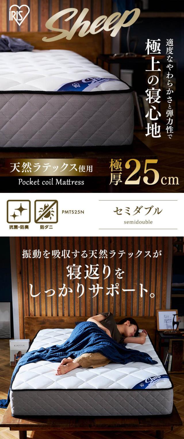 【開梱設置対象】マットレス セミダブル 高反発 ポケットコイル ベッドマットレス ホテル ラテックス 通気性 抗菌 防臭 厚さ25cm PMTS25N-SD アイリスオーヤマ マットレス ポケットコイル コイル マッ ト ベッド 抗菌 防臭 睡眠 快眠 寝具 眠り ベット セミダブル