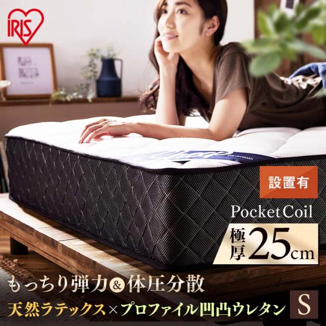 \開梱設置対象/マットレス シングル 高反発 ポケットコイル ホテル ラテックス プロファイル 硬め 体圧分散 抗菌 防臭 防ダニ 厚さ25cm PMTS25H-S アイリスオーヤマ シングル かため 硬め マットレス ポケットコイル コイル マット ベッド 組立設置 送料無料