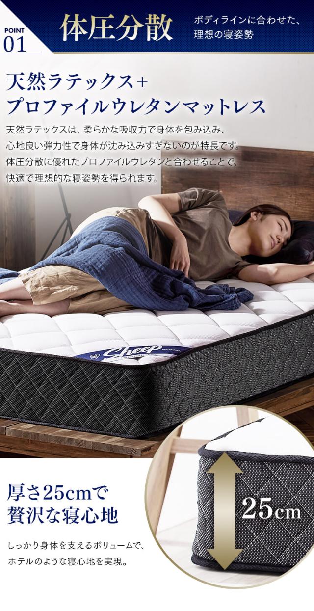振動を吸収する天然ラテックスが寝返りをしっかりサポート。