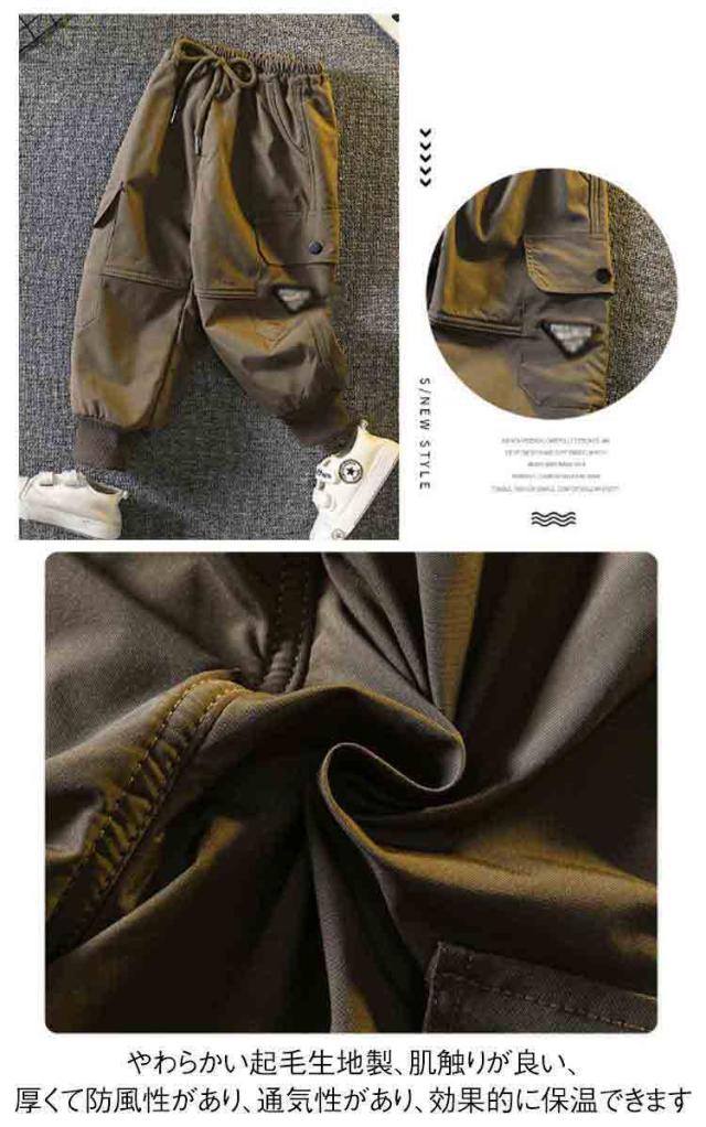 | 寒い季節にぴったりな裏起毛ジョガーパンツ やわらかい起毛生地製、肌触りが良い、厚くて防風性があり、通気性があり、効果的に保温できます カジュアルで部屋着/ルームウェアとしても、普段着としてもご利用いただけます。 少しゆったりとしたサイズ感に作ってあり、リラックスして着られます。 ウエストは総ゴム仕様で楽でストレスフリーな履き心地。 秋冬のお出かけ、通園、通学にマストな一枚です | |