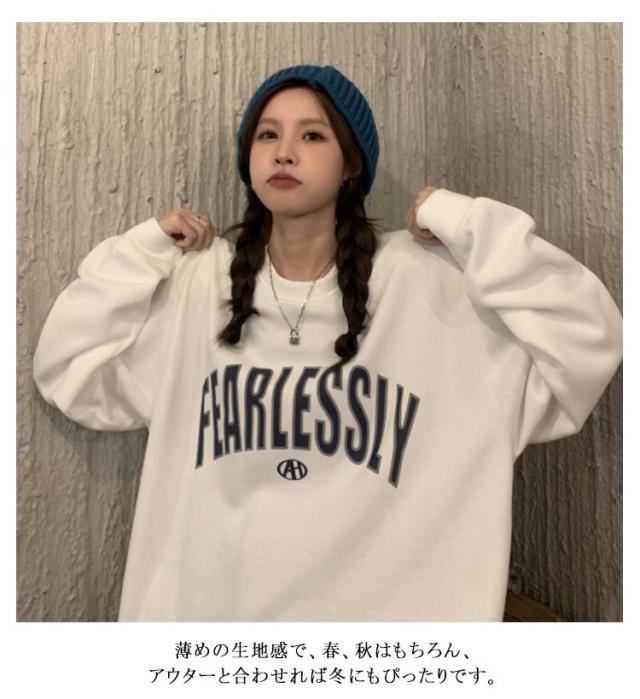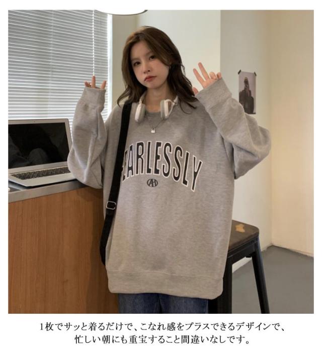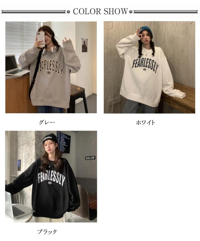 ビッグシルエット トレーナー レディース スウェット トップス 可愛い クルーネック 長袖 ビックトレーナー ゆったり プルオーバー 薄手 ロゴ ロンT 大きいサイズ 韓国 秋 冬 秋冬 秋服 服 送料無料