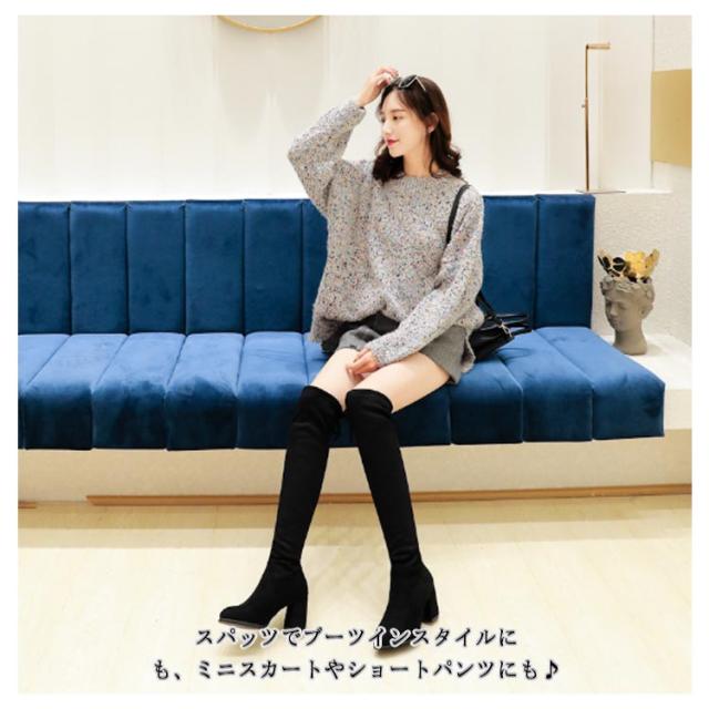 | 超美脚のニーハイブーツ。 ストレッチ効いて脚にぴったりフィットしても快適な履き心地です。 ヒールが高いけど細すぎないヒールなので、安定感があって歩きやすい上に、脚長効果もあり! 長めの筒丈はひざ下全体をカバーしてくれるので足元も温かい。 スパッツでブーツインスタイルにも、ミニスカートやショートパンツにも♪ 綺麗めのエレガントスタイルから大人カジュアルにと幅広く使える一足です。 | |