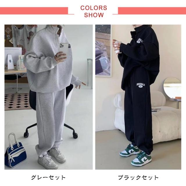 セットアップ レディース スウェットパンツ プルオーバー 部屋着 上下セット 秋服 長袖 パーカー プルオーバーパーカー スウェットパーカー シンプル 大人 アウトドア セットアップ スポーツ スタンドカラー