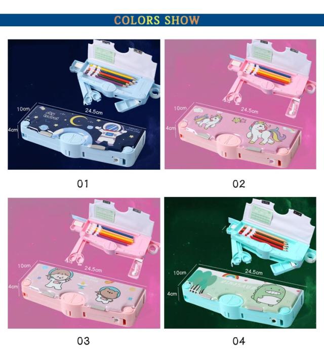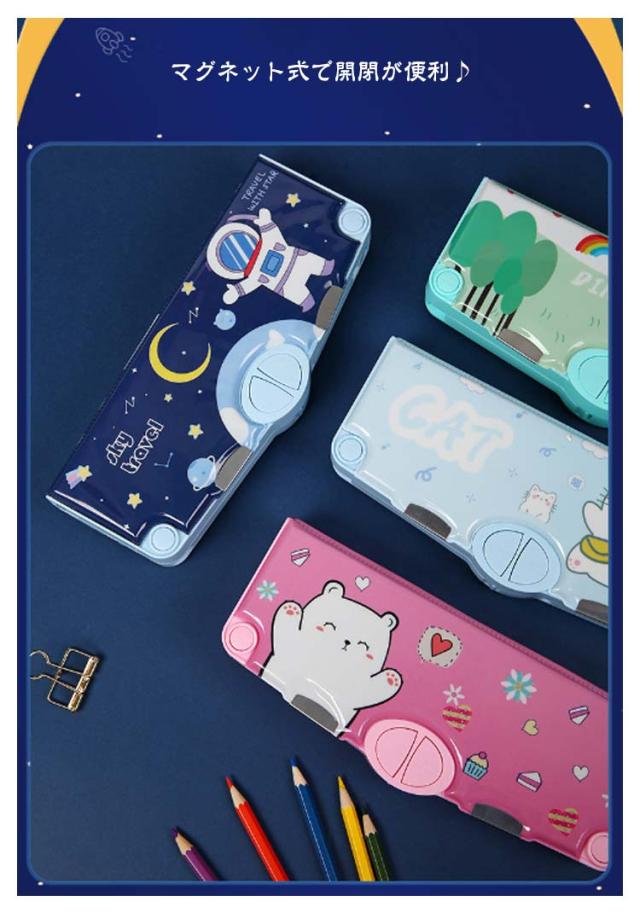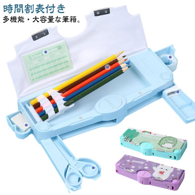 ペンケース 鉛筆削り付き 小学生 筆箱 ハサミ 消しゴム 小物入れ テープ収納リング 筆入れ ぼたん筆箱 物差し 多機能 ペンケース ふでばこ 軽量 大容量 マグネット コンパクト 男の子 女の子 時間割表 小学校 文具 鉛筆ケース 誕生日 プレゼント 耐久性