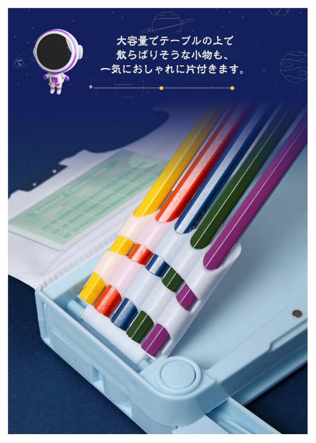 | 多機能・大容量な筆箱。 大容量でテーブルの上で散らばりそうな小物も、一気におしゃれに片付きます。 文房具が一目瞭然で、分かりやすく使いやすい! 消しゴムが入るスペースもあります。 物差しやテープなどの小物も収納できます。 機能性はバッチリなので大活躍間違いなし。 マグネット式で開閉が便利♪ お子様へのプレゼントに最適です。 | |