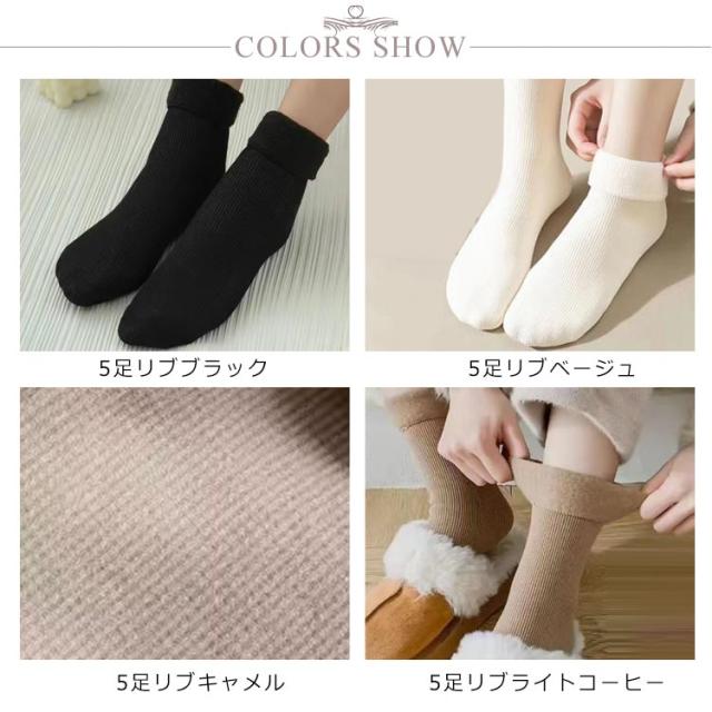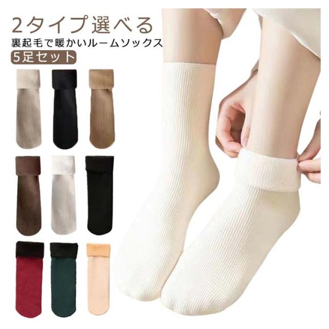 リブ 2タイプ選べる コーラルフリースソックス クルーソックス レディース 厚手 ロング靴下 【5足セット】ルームソックス もこもこ 靴下 レディース 冬 裏起毛ソックス 無地 滑り止め もこもこ靴下 保温 【5足セット】ルームソックス 睡眠靴下 シンプル