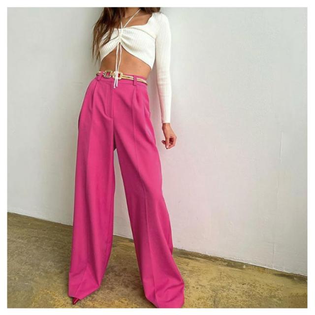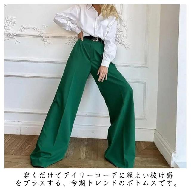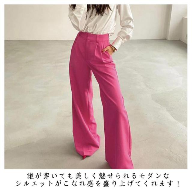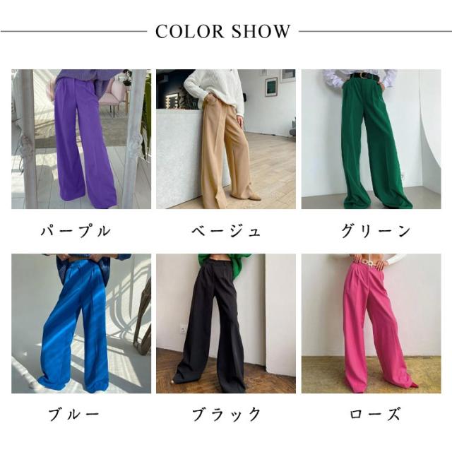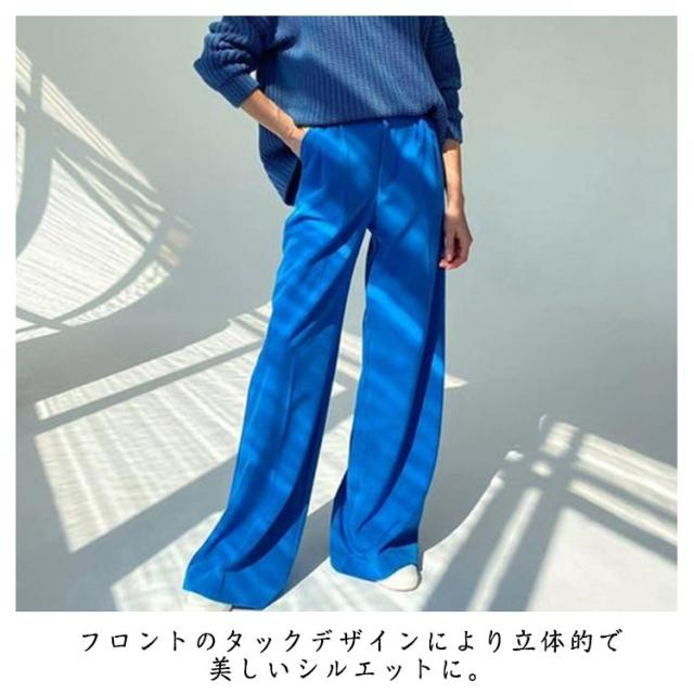 スラックスパンツ パンツ ストレートパンツ タックパンツ ワイドパンツ きれいめ カラーパンツ レディース ハイウエスト カラーパンツ センタープレス ワイド タックパンツ タック ボトムス 無地 ゆったり 体型カバー キレイめ