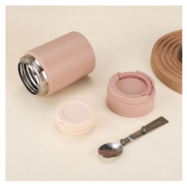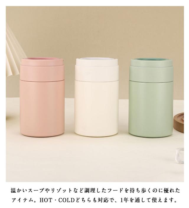 | 折りたたみ可能スプーン付き! 保温・保冷に優れた環境にやさしいステンレス素材フードジャー。 丈夫で清潔なステンレス製。 保温・保冷効果が温度をキープ。 広口でお料理が入れやすい。 温かいスープやリゾットなど調理したフードを持ち歩くのに優れたアイテム。 HOT・COLDどちらも対応で、1年を通して使えます。 容器内面は汚れが落ちやすく洗いやすい、お手入れカンタン。 スタイリッシュなデザインで、収納可ハンドル付きで持ち運びしやすい造りもポイント。 | |
