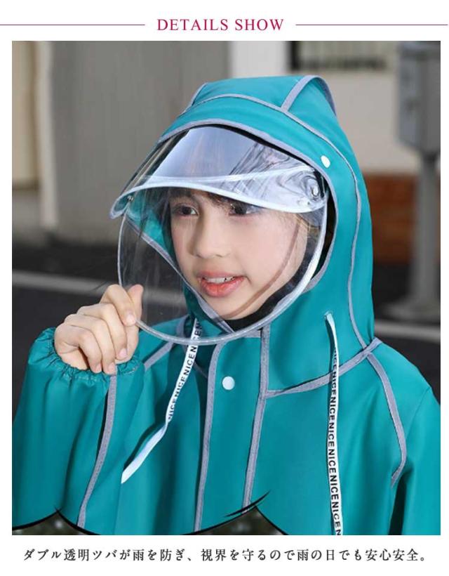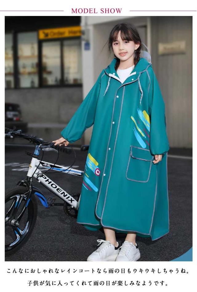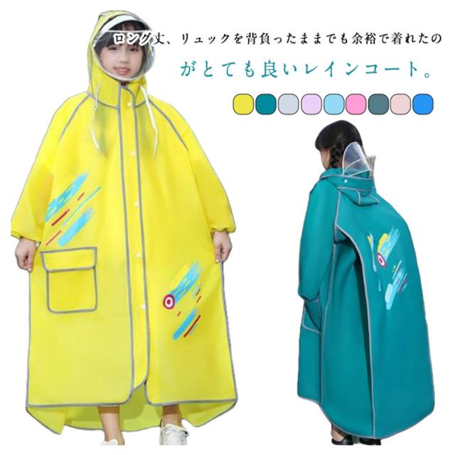 レインコート 自転車 ランドセル対応 ロング丈 ロングレインコート 通学 リュック レインコート ダブルツバ付き レインウェア 雨具 アウトドア カッパ 女の子 男の子 レイン コート おしゃれ