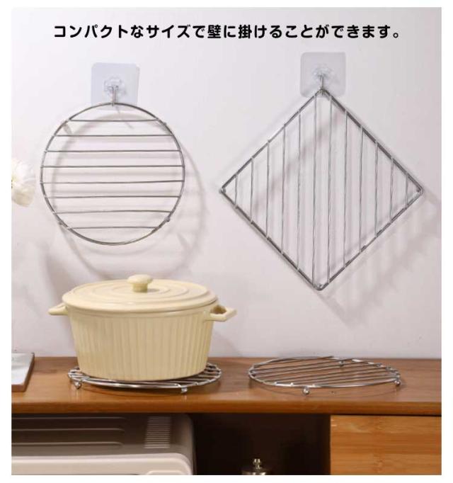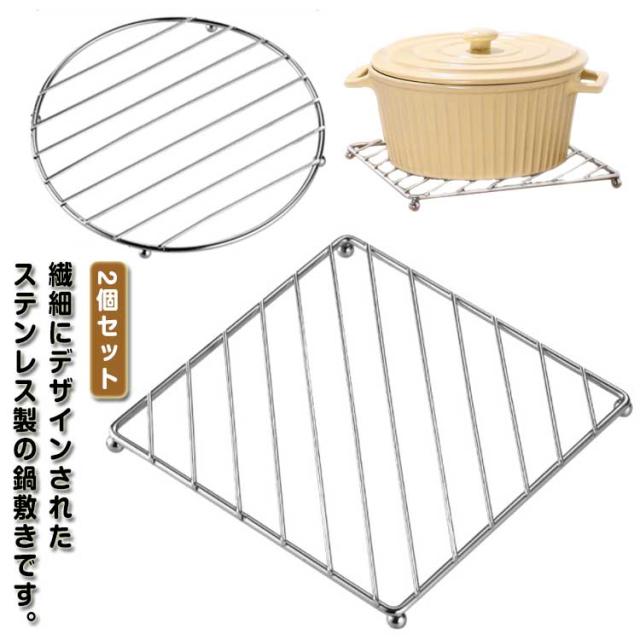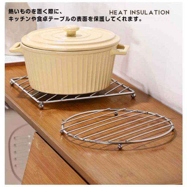 鉄瓶 土鍋 ステンレス製 ポット 蒸し器ラック 2個セット 耐熱 ケトル ダイニング 鍋敷き ポットマット キッチン雑貨 テーブル 食器置き 鍋敷き 滑り止め 多用途 丸型 角型 調理用 家庭用