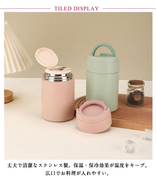 | 折りたたみ可能スプーン付き! 保温・保冷に優れた環境にやさしいステンレス素材フードジャー。 丈夫で清潔なステンレス製。 保温・保冷効果が温度をキープ。 広口でお料理が入れやすい。 温かいスープやリゾットなど調理したフードを持ち歩くのに優れたアイテム。 HOT・COLDどちらも対応で、1年を通して使えます。 容器内面は汚れが落ちやすく洗いやすい、お手入れカンタン。 スタイリッシュなデザインで、収納可ハンドル付きで持ち運びしやすい造りもポイント。 | |