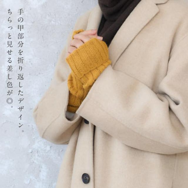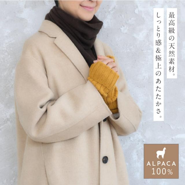 保温性・肌触りに優れたアルパカ毛100%のしっとり感。一度つけると手放せなくなりそうな、柔らか&極上のあたたかさのアームウォーマー。手の甲部分を折り返したデザインが特徴。アウターからチラッと覗かせてワンランク上のおしゃれを楽しめます。
