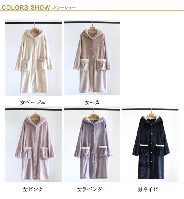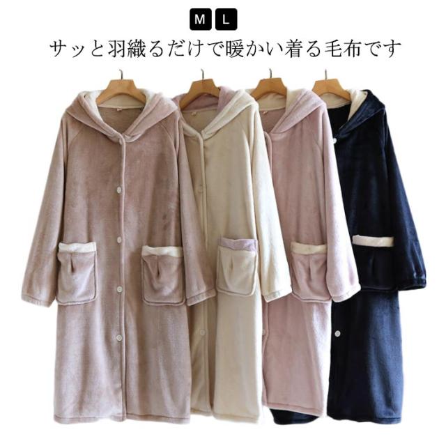 ルームウェア ポケットあり 着る毛布 ルームワンピース ガウン もこもこ フード付き メンズ パジャマ 厚手 レディース フランネル 前開き 可愛い おしゃれ 着るブランケット 秋