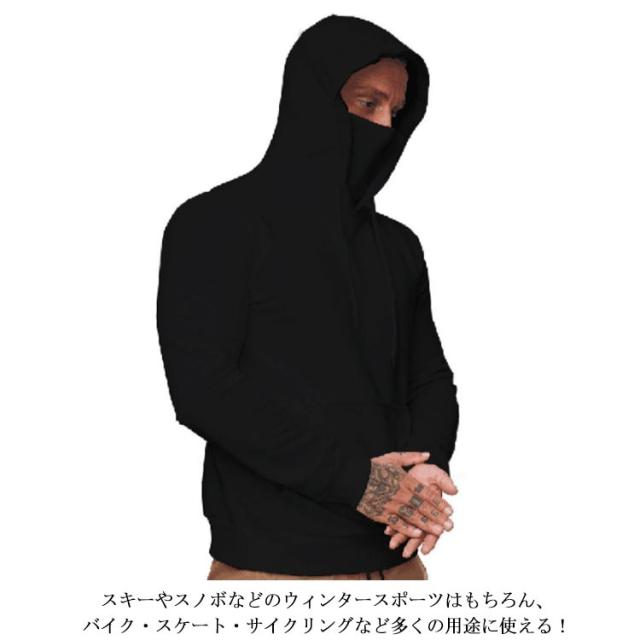 | 顔まで暖かくて包み込まれるフェイスマスク付きパーカー。 充実の機能でタウンユースからスポーツ時にも大活躍! スキーやスノボなどのウィンタースポーツはもちろん、バイク・スケート・サイクリングなど多くの用途に使える! | |