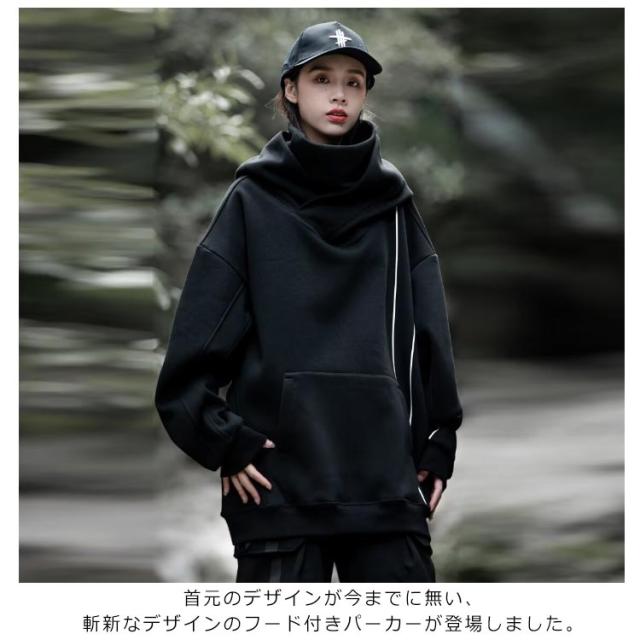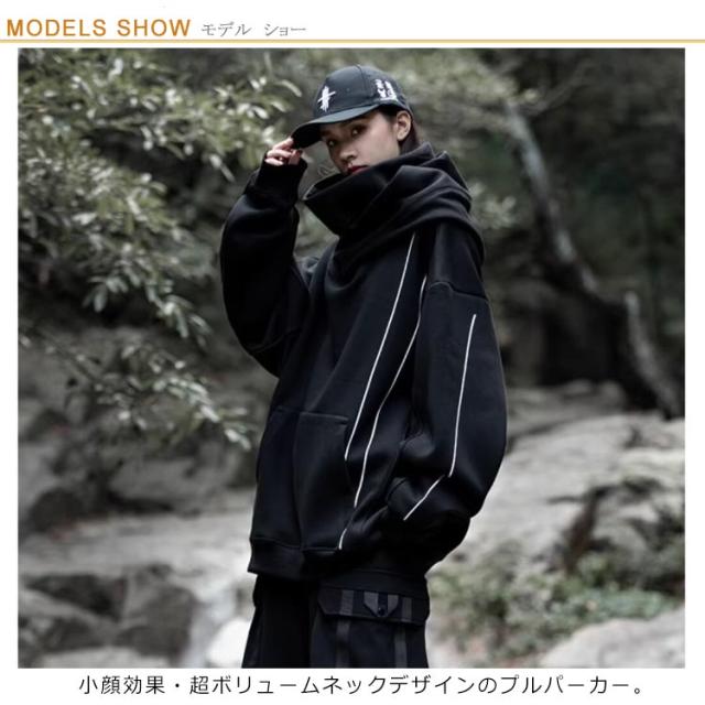 ボリュームネック 男女兼用 メンズ トレーナー パーカー タートルネック レディース フード付き ボリュームネック カップル スウェットパーカー ハイネック 大きいサイズ ドロップショルダー ストリート系 お兄系 個性的 モード系 原宿風