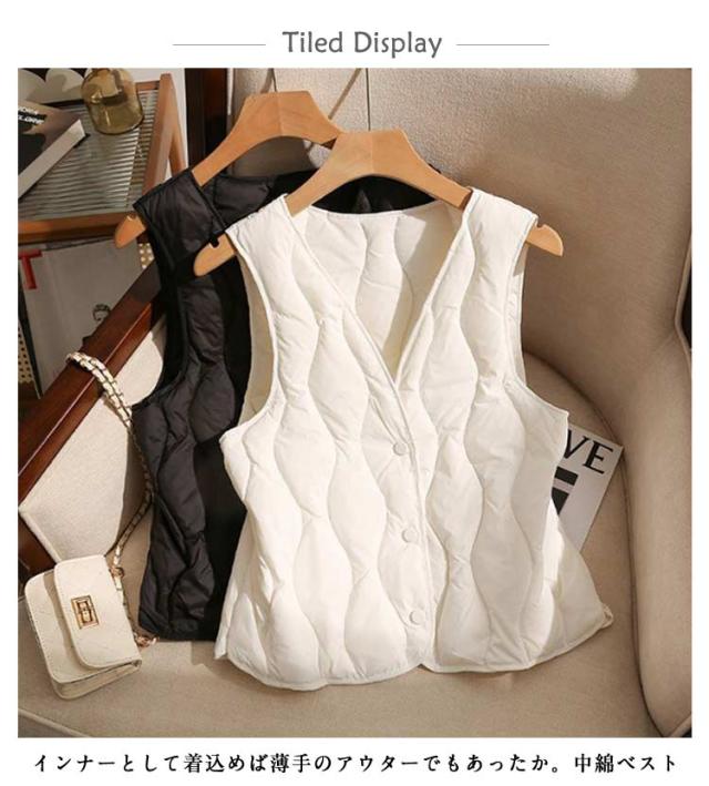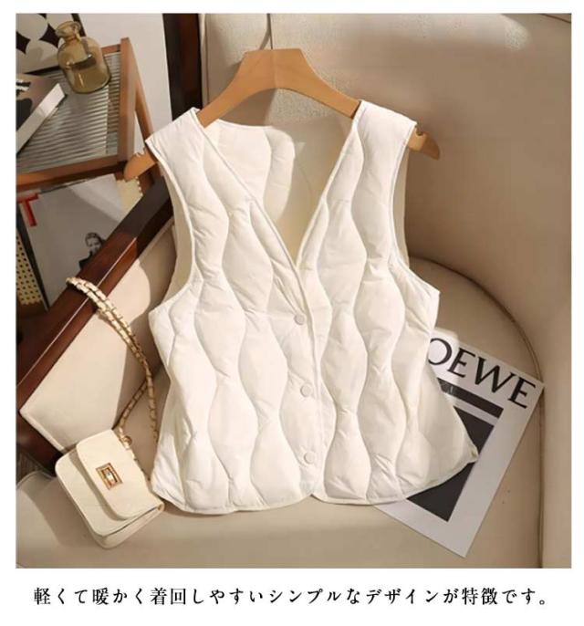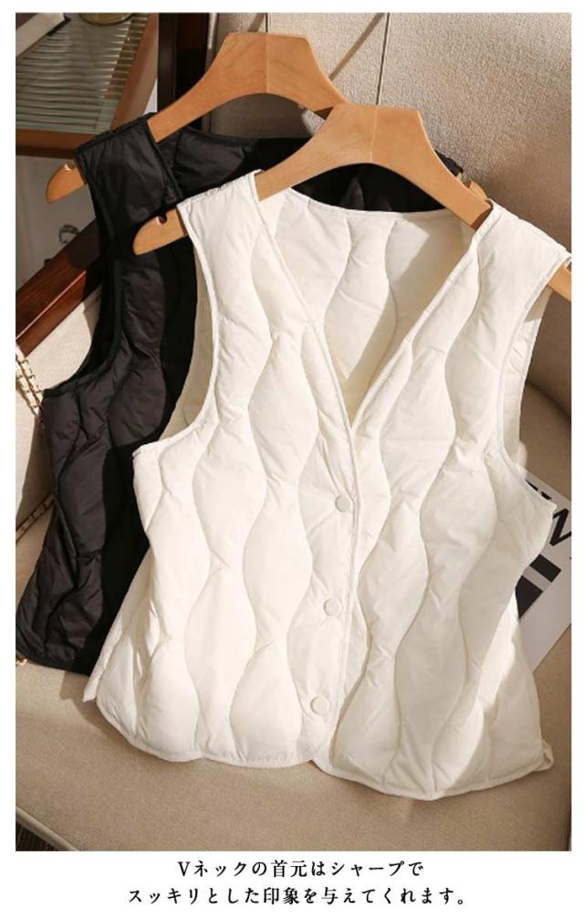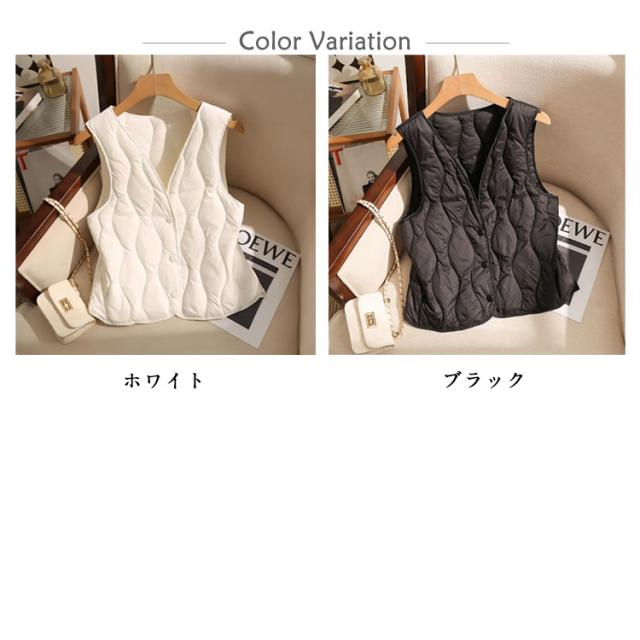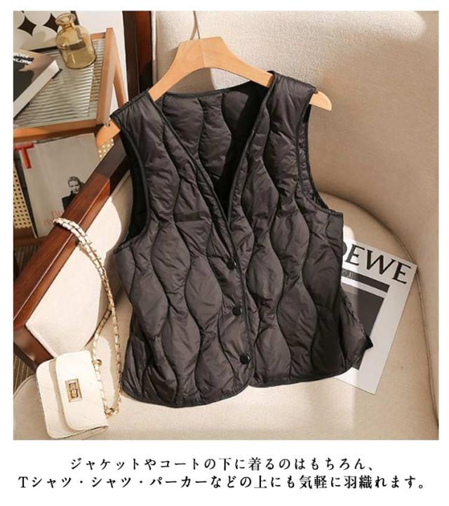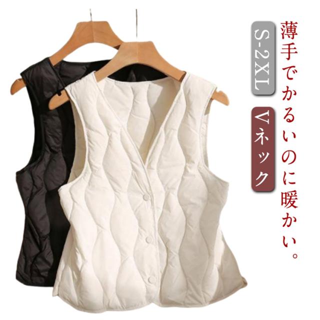 キルティング 超軽量 薄手 秋冬 ジレ 中綿ベスト ダウン風ベスト アウター ジャケット 羽織 Vネック コート ノースリーブ ショート 軽量 上着 軽い インナーベスト 保温 防寒 防風 Vネック ライトダウン 秋 冬 大きいサイズ カジュアル 大人 送料無料 黒