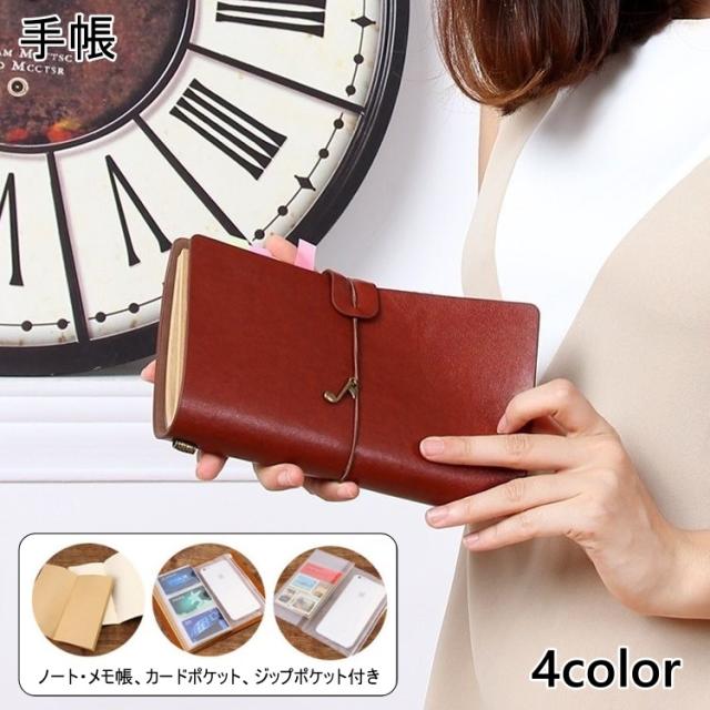 ノート、メモ帳、カードポケット、ジップポケットが付属します。