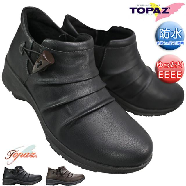 トパーズ ブーツ TZ4829 ブラック・モカブラウン 23cm〜25cm レディース ショートブーツ サイドゴアブーツ 防水ブーツ シューズ 婦人靴 防滑 4E ゆったり 幅広 ワイド TOPAZ トパーズ4829 TZ-4829 滑りにくい