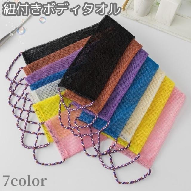 ボディタオル ロング 紐付き 垢すりタオル 持ち手付き 両面 背中洗い 身体洗い メッシュ バス用品 泡立て シンプル あかすり