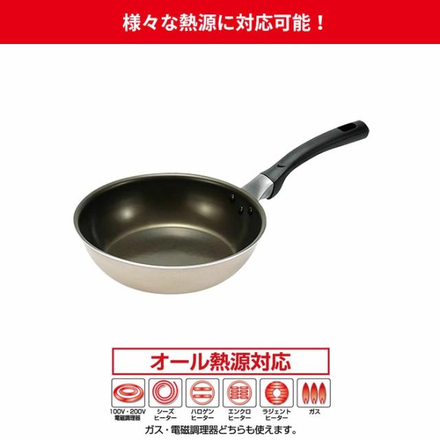 | ・オール熱源対応 ・焦げつきにくくお手入れ簡単なフッ素コーティング加工 ・扱いやすい軽量構造 ・丈夫なフチ形状 |