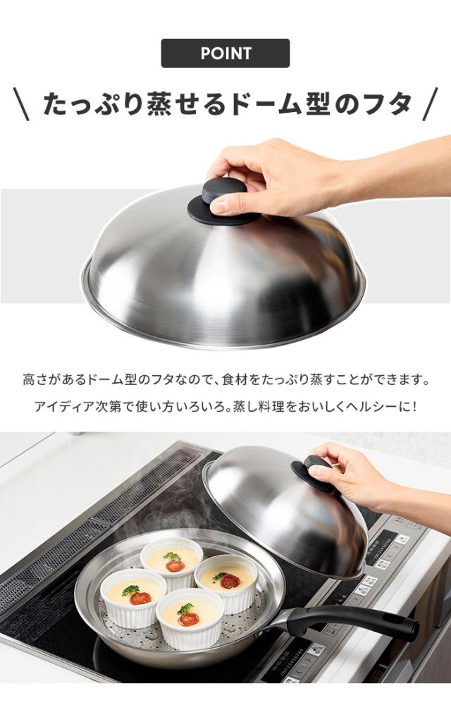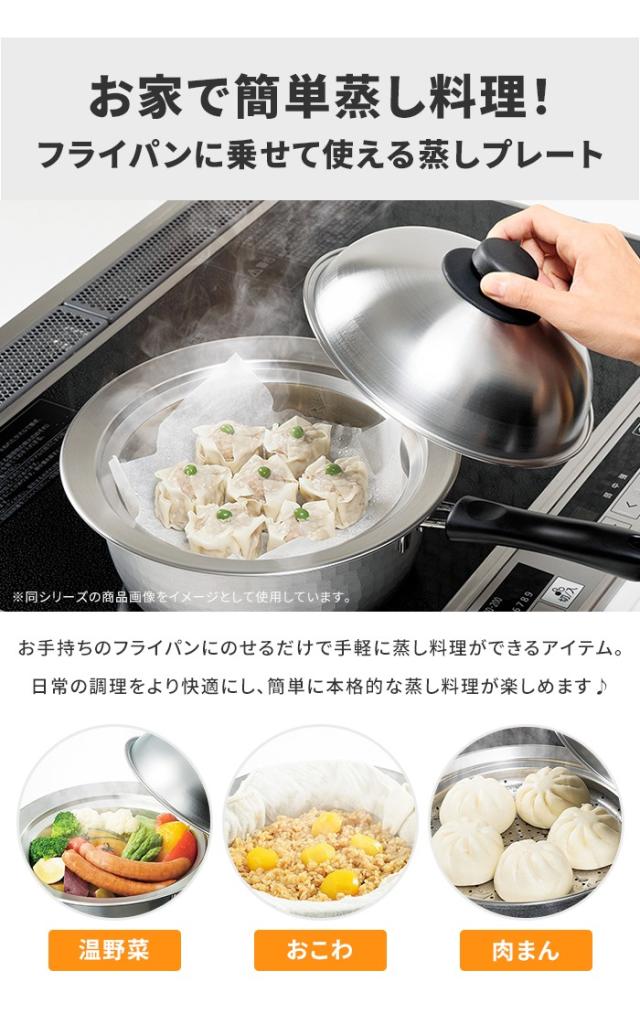 【値下げ】蒸しプレート フライパン用 24〜26cm フライパンにのせて簡単 スチームプレート 蓋付き 蒸し器 スチーマー フタ付き 日本製 ドーム型 キッチン用品 蒸し料理 ヘルシー