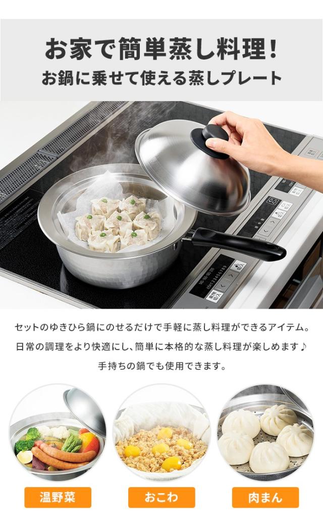 キーワード: 燕熟の技 ゆきひら鍋 スチームプレート18〜20cm ステンレス製 鍋用 蒸し料理セット 20cm鍋 調理器具 日本製 燕三条製 簡単調理 高品質 軽量 蒸し器 蒸し物 蒸し鍋 せいろ 蒸し籠 蒸し調理グッズ 鍋セット 雪平鍋 ドーム型蒸しプレート スチーマー フタ付き ステンレス お鍋に乗せる 蒸し料理 蒸し調理 蒸し野菜 ヘルシー 便利]