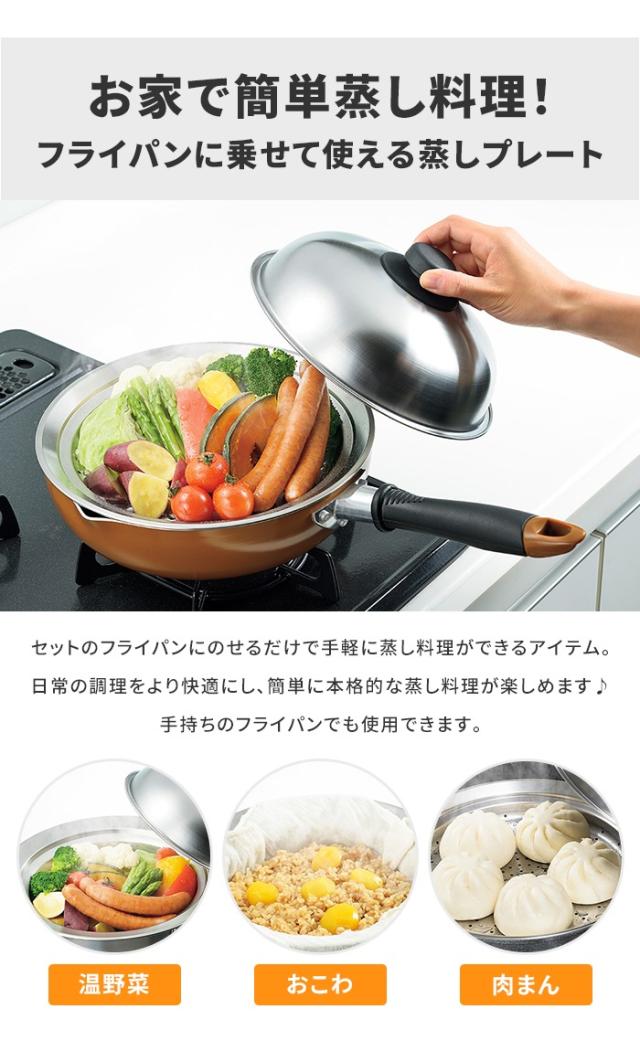 【値下げ】蒸し器 フライパンセット フライパン24cm/のせるスチームプレート 24〜26cm 蓋付き セット フライパンにのせて簡単 蒸しプレート 日本製 蒸し器 スチーマー 鍋 なべ 一人暮らし 新生活