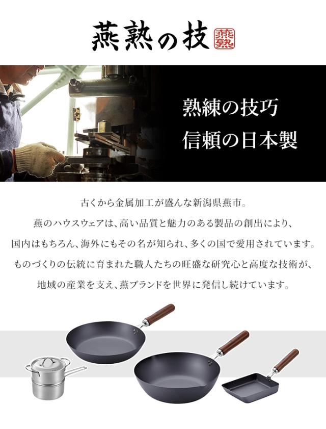 キーワード: 燕熟の技 フライパン 26cm いため鍋 28cm 玉子焼 14×18cm ミニ2段蒸し器 14cm 窒化加工 日本製 鉄製 ステンレス製 IH/ガス 両用 ガス火 IH対応 キッチン用品 燕三条 調理器具 セット