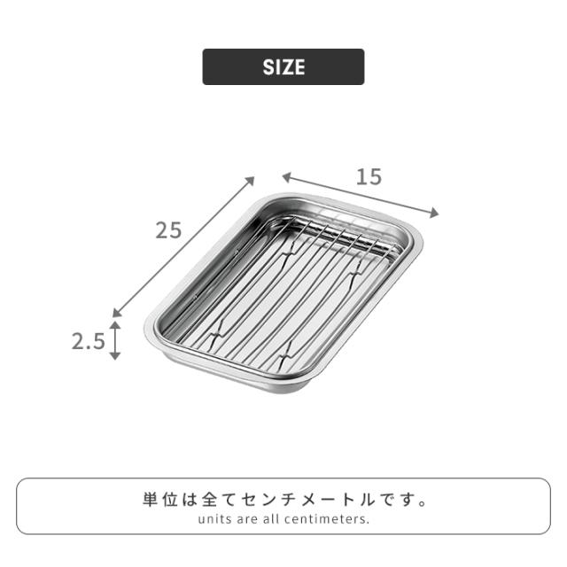 | ・バットは丈夫で耐久性に優れたステンレス製 ・アミ付きなので、揚物の油切りに最適 |