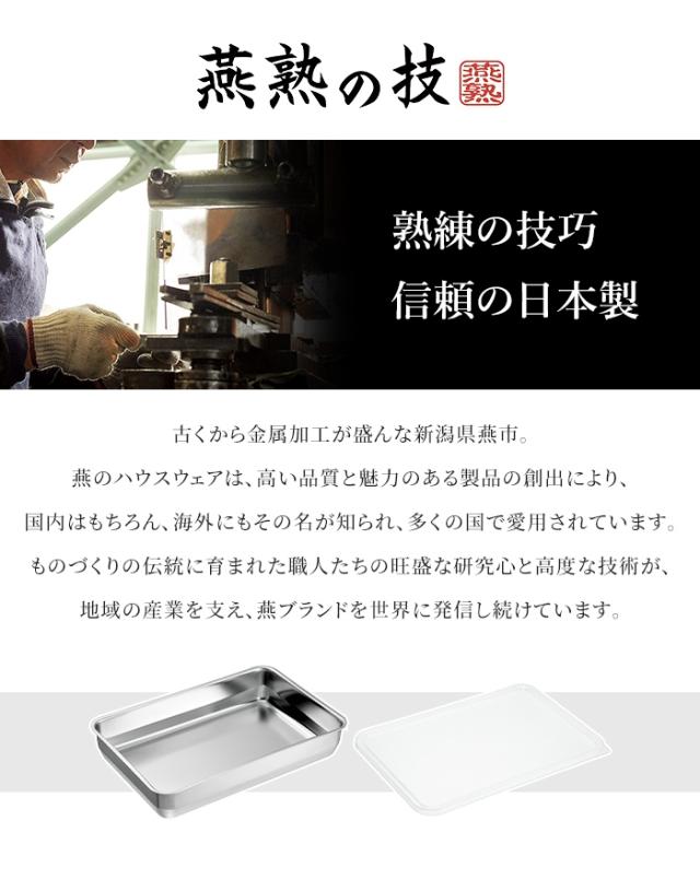 キーワード: 燕熟の技 角型バット 1/1サイズ 蓋付 ステンレス製 日本製 保存容器 食品保管 料理用 調理器具 キッチン用品 大容量