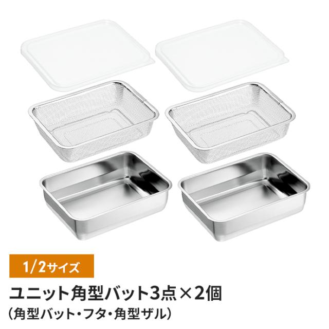 | [セット内容] ・バット1/2、蓋×各2 ・ザル1/2×2 |