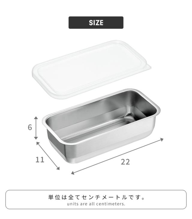 | [バット1/3](外径)22×11×高さ6cm (内径)20.6×9.8cm/(重量)150g/(容量)1L [蓋]50g |