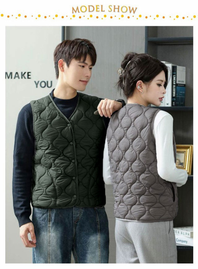 | 軽くて暖かく着回しやすいVネックインナーダウンベスト。【男女兼用】 ファイバーダウン入りで温かさキープできるのはもちろん、波型のキルティングが目を引くデザインです。 今からのシーズンムードを盛り上げてくれる優秀な1枚◎ ボトムスを選ばない着丈でいつものスタイルにプラスしやすい1枚です。 男女着用いただけるユニセックスアイテムになります。 普段使いはもちろん、キャンプやレジャー、アウトドア、通勤や通学などにも幅広いシーンで活躍するダウンベストジャケットです。 | |