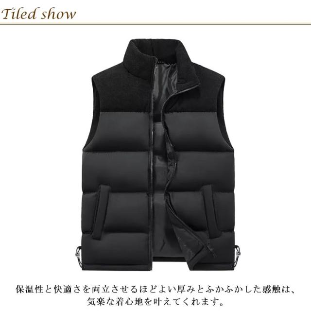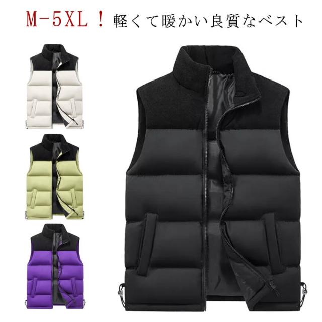 中綿ベスト アウター カジュアル 防寒着 アウター ライト メンズ アウトドア ノースリーブ 羽織り チョッキ ジャンパー 大きいサイズ 紳士 無地 スタンドカラー 厚手 秋冬服 ベスト 保温 冬服 キルティング 秋冬 メンズファッション 軽量 部屋着 通学 通勤