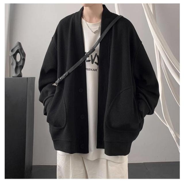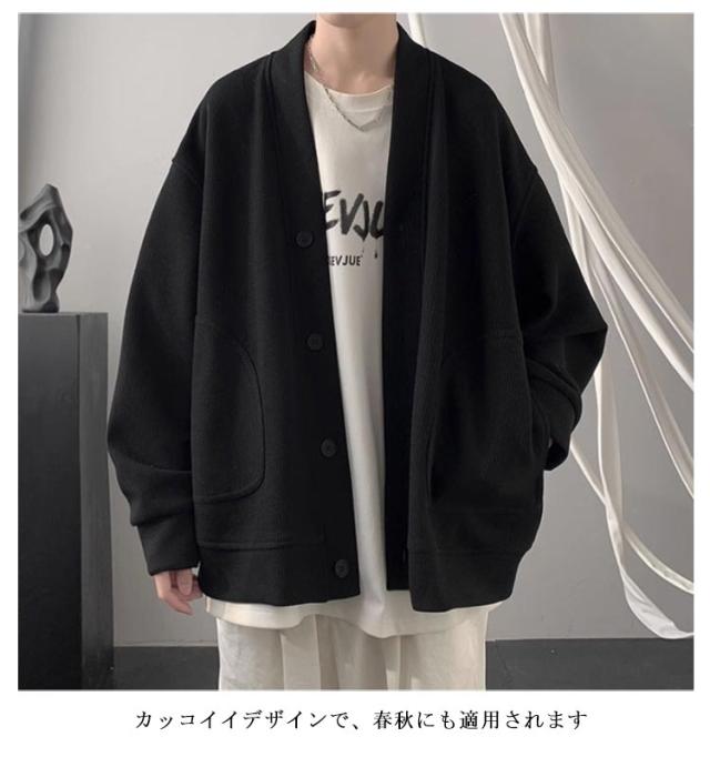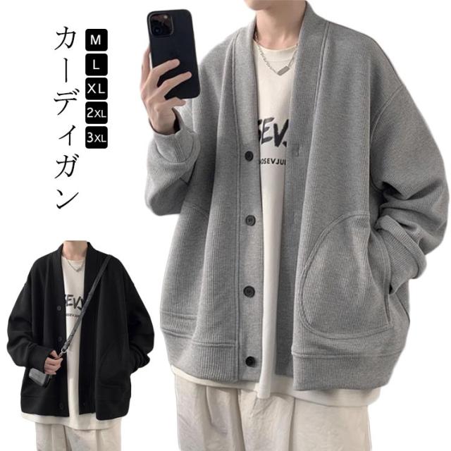 秋冬 メンズ カーディガン レディース ジャケット 上着 ゆったり ビッグシルエット 長袖 カーデ スクールカーディガン ブルゾン 暖かい トップス ニットセーター 厚手 vネック 防風 人気 大きいサイズ カーディガン シンプル 防寒着 秋 秋服 おしゃれ 黒 ブラック