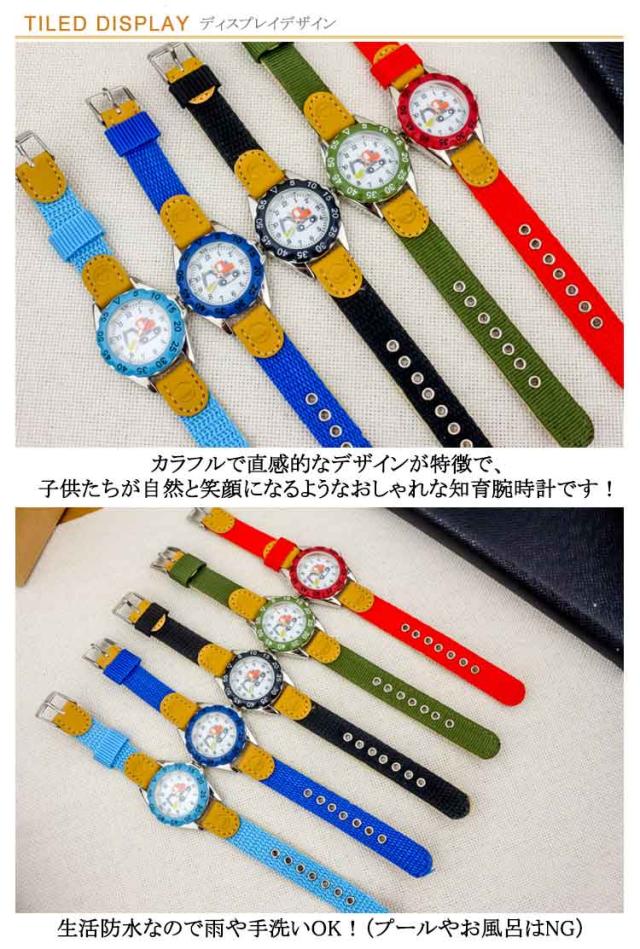 | すぐに読めるようになるので、こども自ら時間を言いたくなる知育腕時計 カラフルで直感的なデザインが特徴で、子供たちが自然と笑顔になるようなおしゃれな知育腕時計です! 生活防水なので雨や手洗いOK!(プールやお風呂はNG) | |