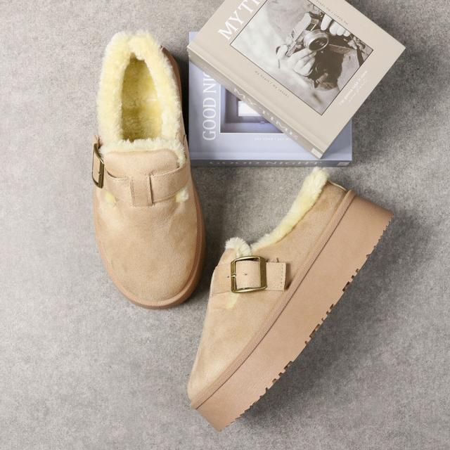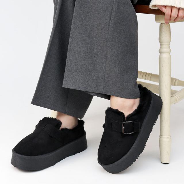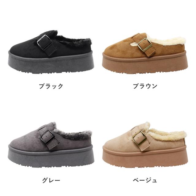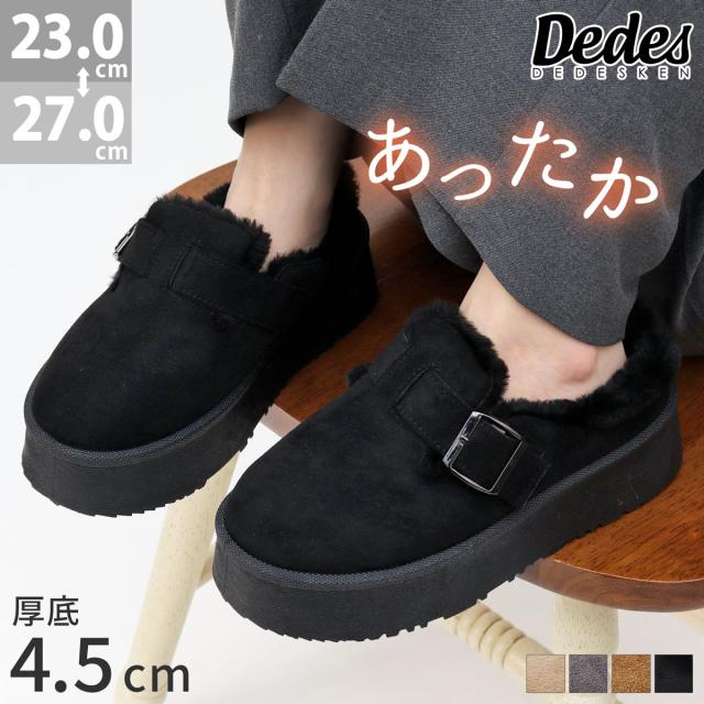 ムートンブーツ 厚底 ユニセックス スリッポン ショート ベルト 防寒 かかとなし スエード 大きいサイズ 冬 23-27cm No.6367 デデス
