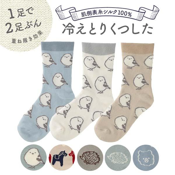 フレンズヒル 冷えとりソックス 靴下 くつした ルームソックス 重ね履き シルク混 絹 保温 鳥 シマエナガ ハリネズミ くま テディベア かわいい ギフト プレゼント レディース