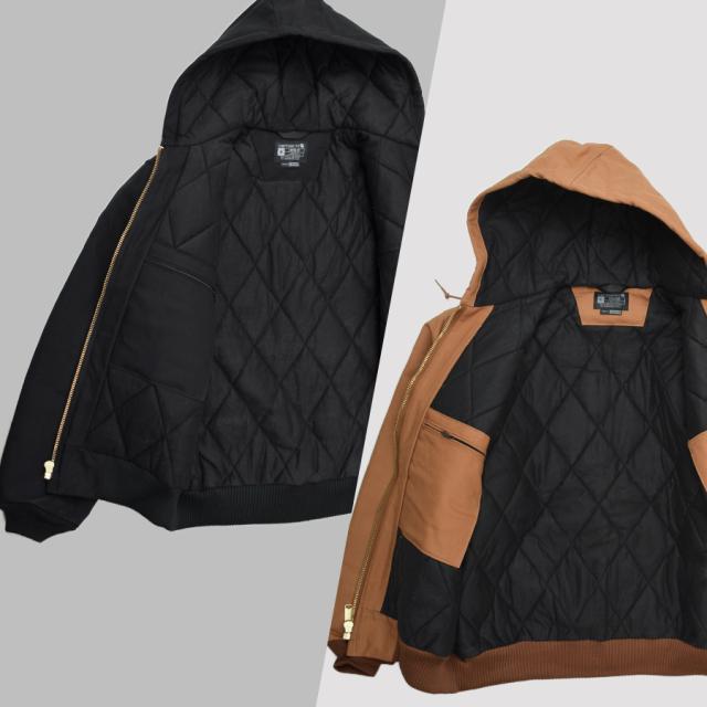 ワークウェアブランドのCarhartt(カーハート)より12オンスのコットンダック生地を使用したアクティブジャケットを入荷しました。 裏地にはフランネルタイプのキルティングが高い保温性を確保、アウターとして大活躍。本格的なワーク仕様でタウンユースでもかっこいい1着。