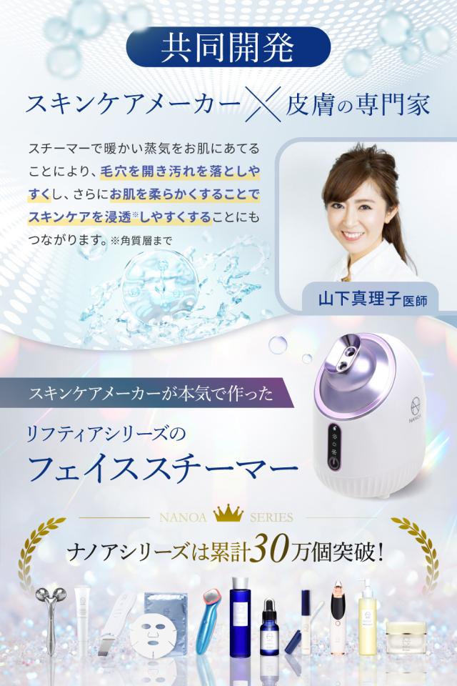 ◆ 「潤うツヤ肌、上質スキンケア体験を。」NANOAリフティア フェイススチーマーは、乾燥肌、混合肌、ゆらぎ肌が気になる‥そんなあなたのために美容皮膚科医と共同開発したプレミアムフェイススチーマーです。色:パープル