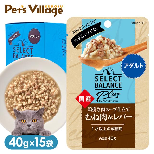セレクトバランス プラス 鶏挽き肉スープ仕立て むね肉&レバー アダルト 1歳以上の成猫用 40g×15袋