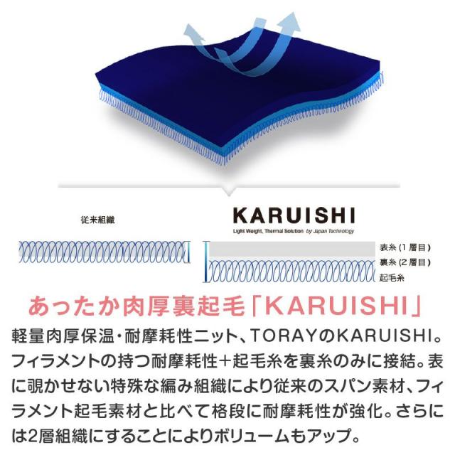 さらに、2層構造にすることで素材のボリューム感も増し、優れた保温性と耐久性を両立しています。