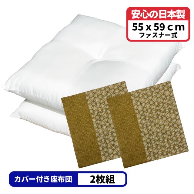 2枚 ヌード座布団 + 座布団カバー 55x59 しじら麻 セット 約55×59cm グリーン 送料無料 日本製 銘仙判 2枚組 2枚セット