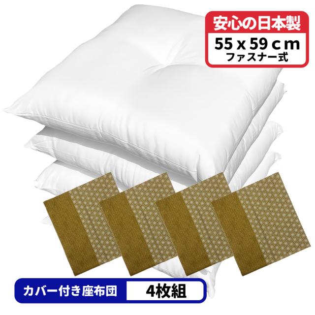 4枚 ヌード座布団 + 座布団カバー 55x59 しじら麻 セット 約55×59cm グリーン 送料無料 日本製 銘仙判 4枚組 4枚セット