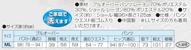 ●素材/プルオーバー・パンツ:レーヨン70%・ポリエステル30%、ショール:レーヨン80%・ポリエステル20%