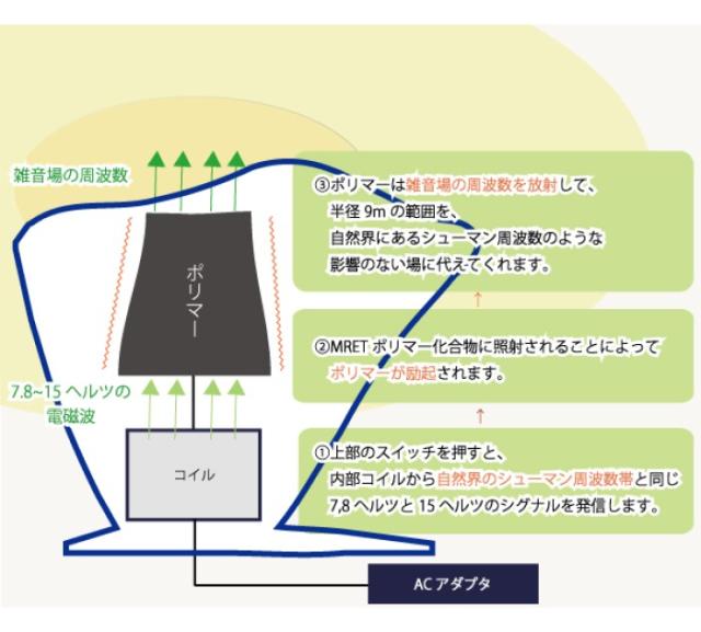 簡単にいうと、"雑音場”をつくって電磁波から身を守ってくれる機械です。