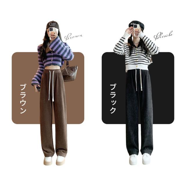 ウエスト部分はゴムと紐で調整可能。裏起毛のデザインで暖かく、秋冬シーズンにぴったりのアイテムです。