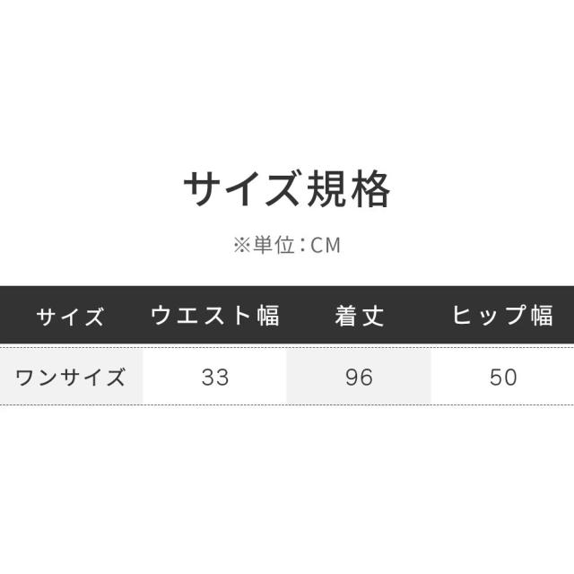 サイズ:ウエスト幅33cm、着丈96cm、ヒップ幅50cm(単位:cm)